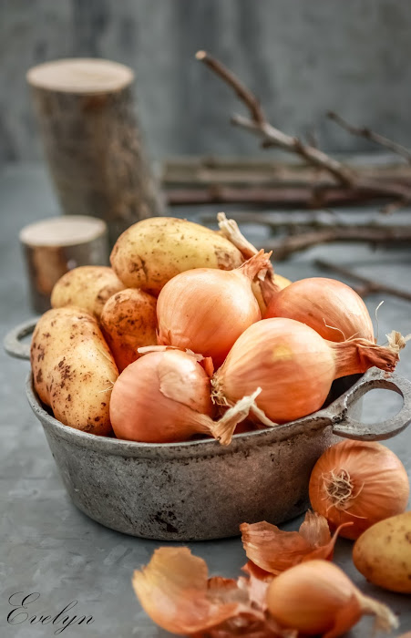 As I have already mentioned it before, in another post, most of my food props are from my in-laws' old wooden barn, including this old pot that used to be the dogs feeding bowl. They have no more dogs so I took it home with me to use it as props, oh, and the tree branches in the back are also from their garden :) As a backdrop I have used two aluminium (or are they tin?) sheets, also from their barn. You don't want to know how our car trunk looked while driving back home, I kept thinking what the border police might say, if we have to open the trunk, and they'll see wooden logs, tree branches, old pots and some dirty aluminium sheets. But everything went fine, now I wonder what my neighbors must be thinking, seeing all this old stuff laying around in our storage unit...Anyways...